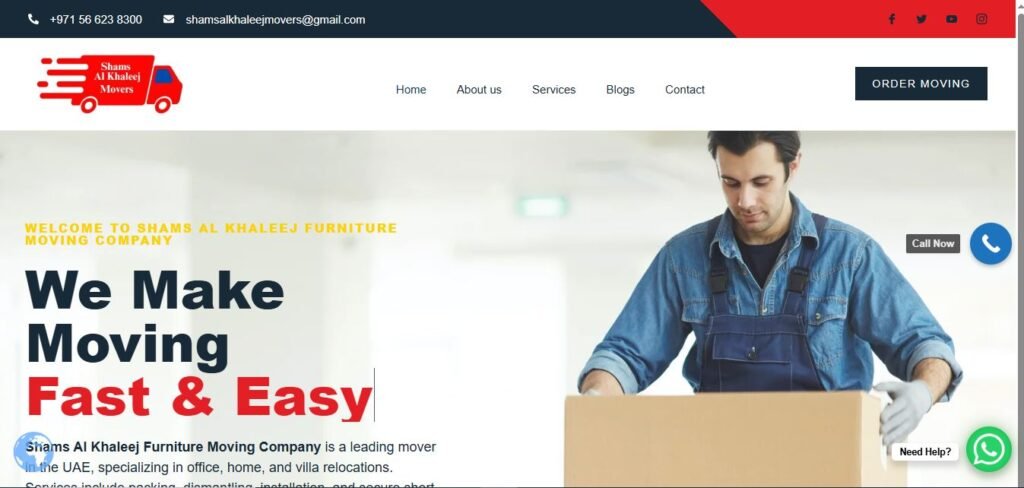 Shams Al Khaleej Furniture Moving Company is a leading mover in the UAE, specializing in office, home, and villa relocations. Services include packing, dismantling, installation, and secure short- or long-term storage.